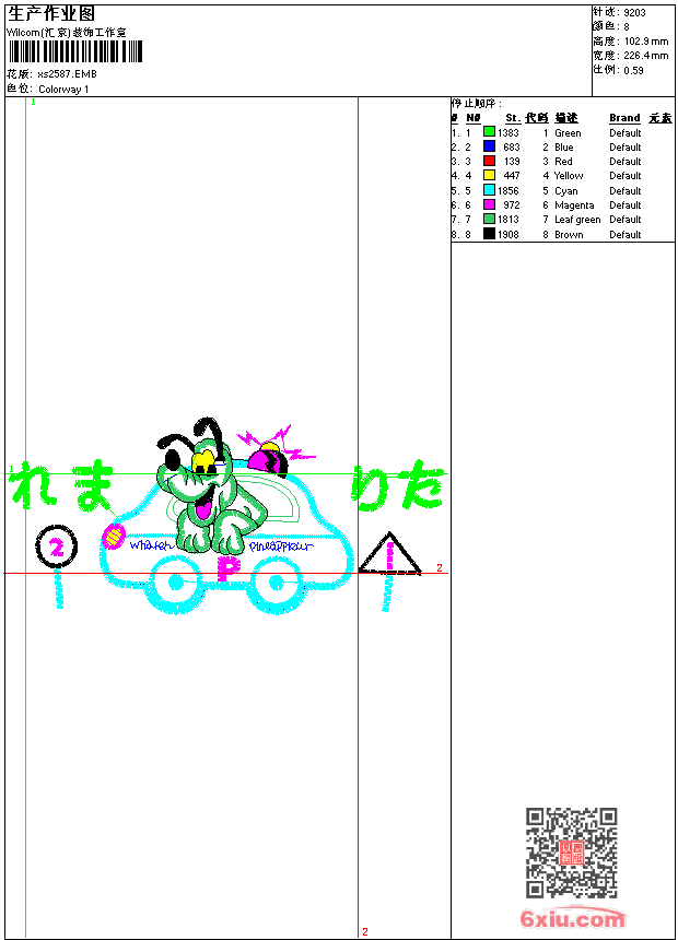 - 版带文件需绣花软件方可打开,可配色打印导出各种格式或直接上机绣。如无绣花软件可下载1:1模拟效果图。