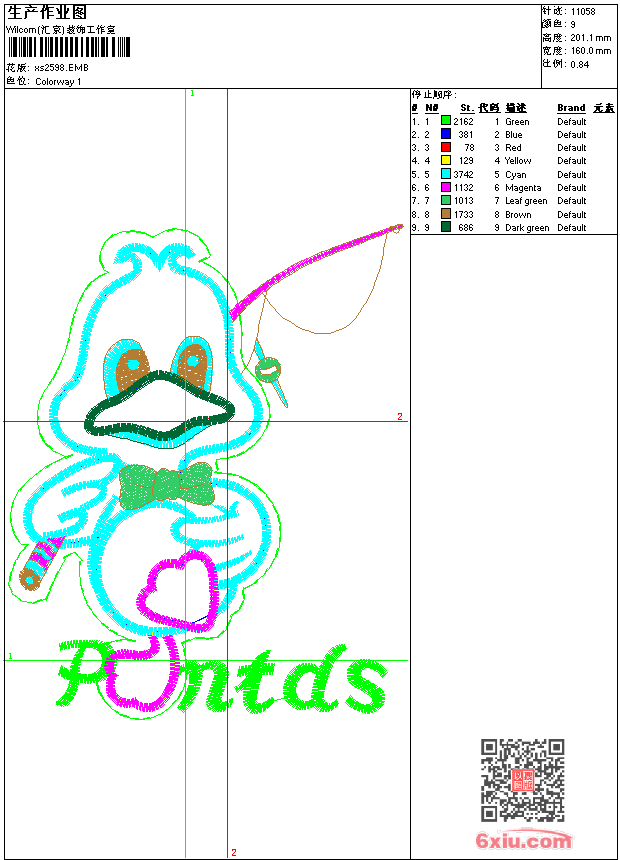 - 版带文件需绣花软件方可打开,可配色打印导出各种格式或直接上机绣。如无绣花软件可下载1:1模拟效果图。