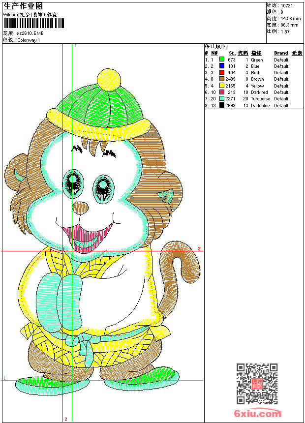 - 版带文件需绣花软件方可打开,可配色打印导出各种格式或直接上机绣。如无绣花软件可下载1:1模拟效果图。