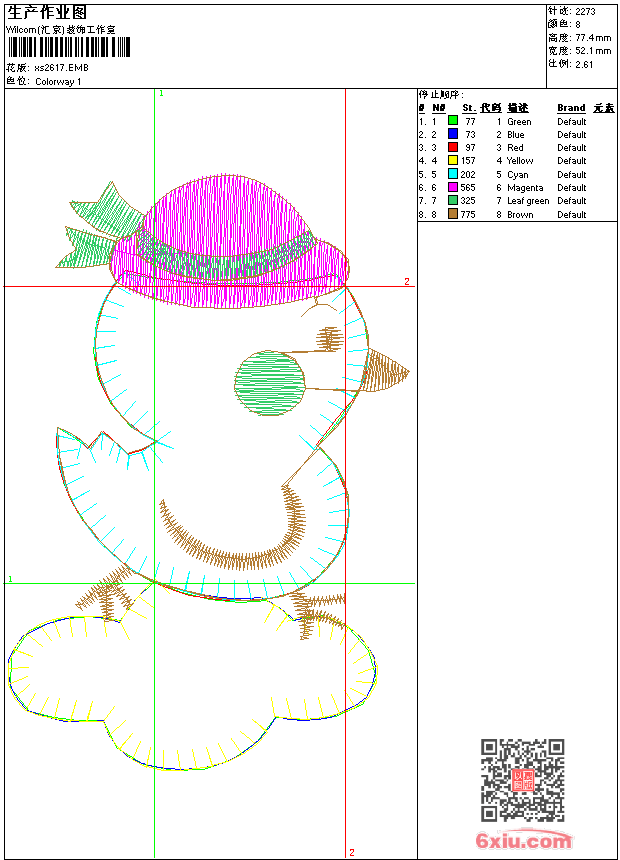 - emb花版参数: 大小:28.00 KB / 尺寸:52*77[毫米] / 针数:2273针 / 线色:8 / 格式:emb / 版本:9