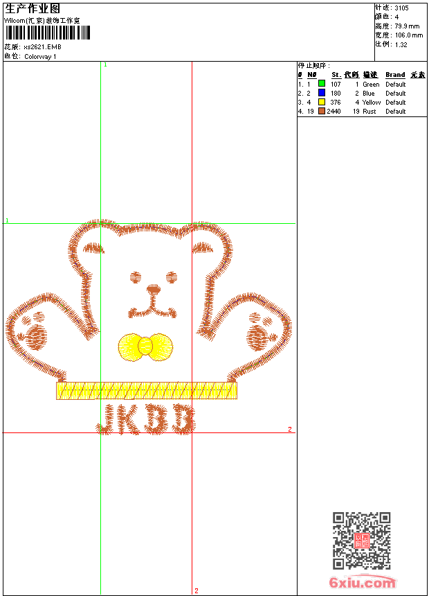 - 版带文件需绣花软件方可打开,可配色打印导出各种格式或直接上机绣。如无绣花软件可下载1:1模拟效果图。