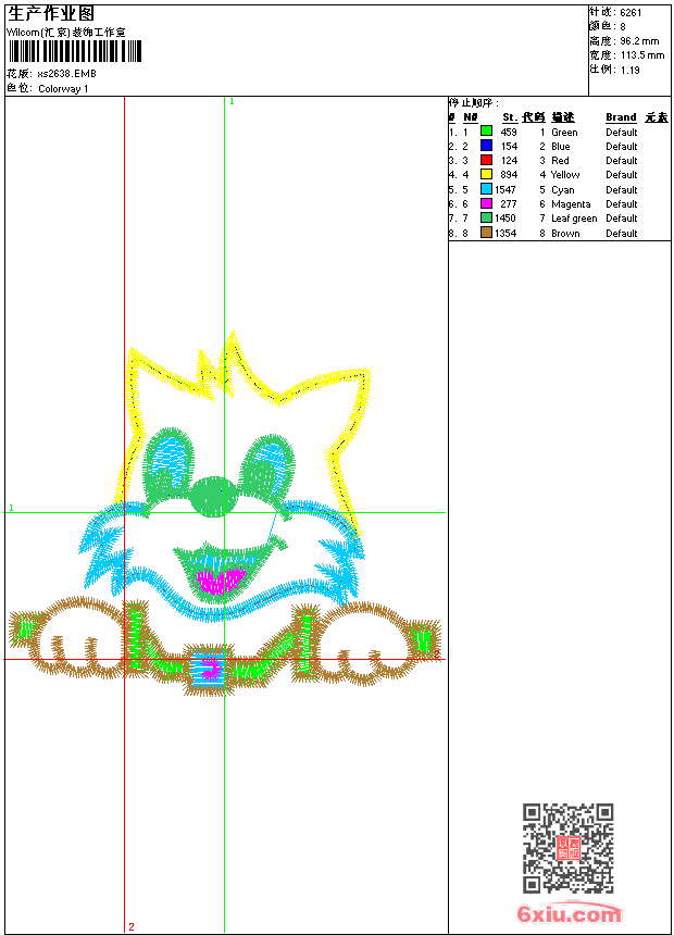 - 版带文件需绣花软件方可打开,可配色打印导出各种格式或直接上机绣。如无绣花软件可下载1:1模拟效果图。