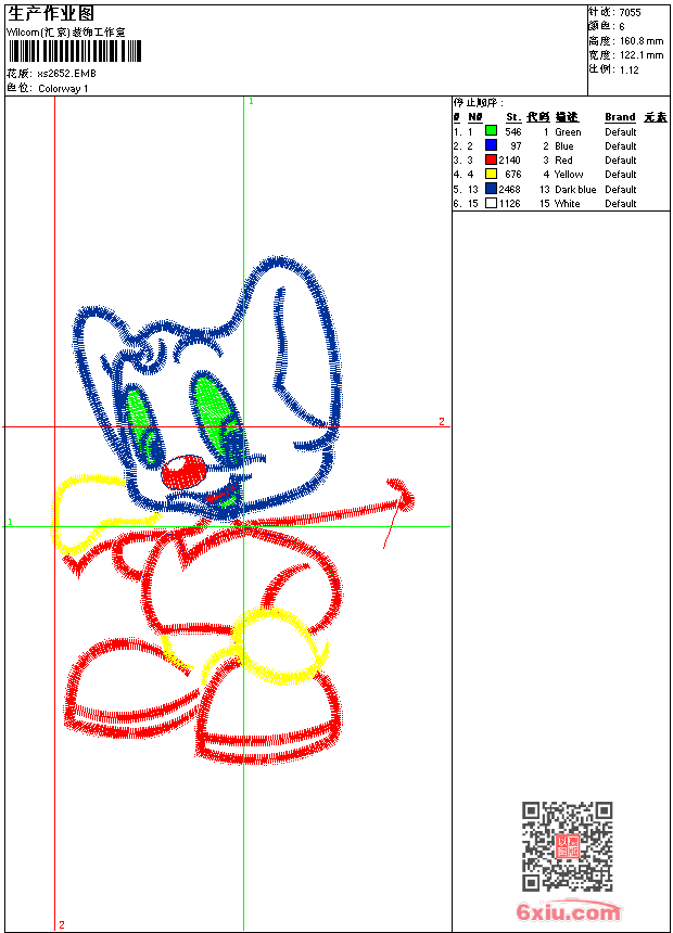 - emb花版参数: 大小:61.50 KB / 尺寸:122*161[毫米] / 针数:7055针 / 线色:6 / 格式:emb / 版本:9