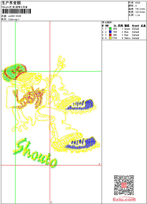 - emb花版参数: 大小:76.00 KB / 尺寸:123*141[毫米] / 针数:9729针 / 线色:4 / 格式:emb / 版本:9