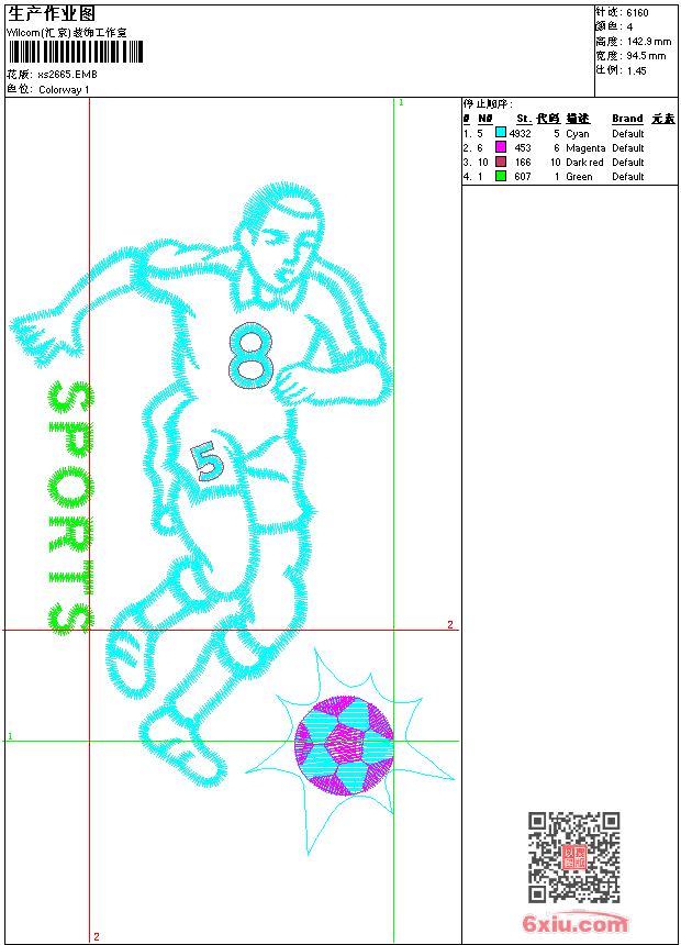 - emb花版参数: 大小:62.50 KB / 尺寸:94*143[毫米] / 针数:6160针 / 线色:4 / 格式:emb / 版本:9