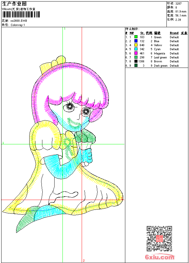 - 版带文件需绣花软件方可打开,可配色打印导出各种格式或直接上机绣。如无绣花软件可下载1:1模拟效果图。