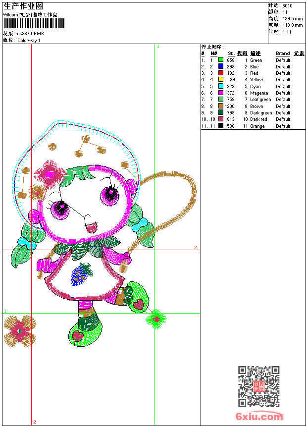 - 版带文件需绣花软件方可打开,可配色打印导出各种格式或直接上机绣。如无绣花软件可下载1:1模拟效果图。