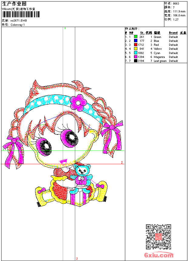 - 版带文件需绣花软件方可打开,可配色打印导出各种格式或直接上机绣。如无绣花软件可下载1:1模拟效果图。