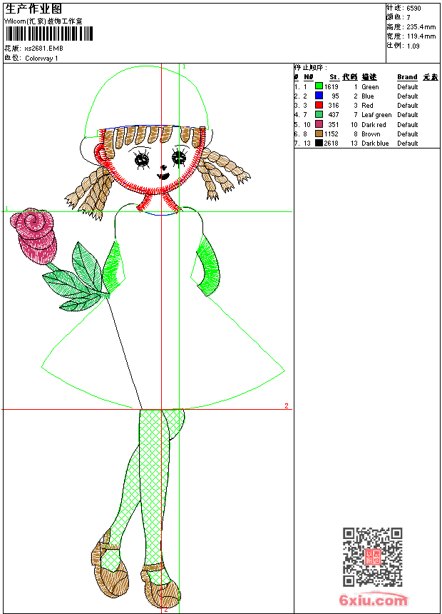 - 版带文件需绣花软件方可打开,可配色打印导出各种格式或直接上机绣。如无绣花软件可下载1:1模拟效果图。