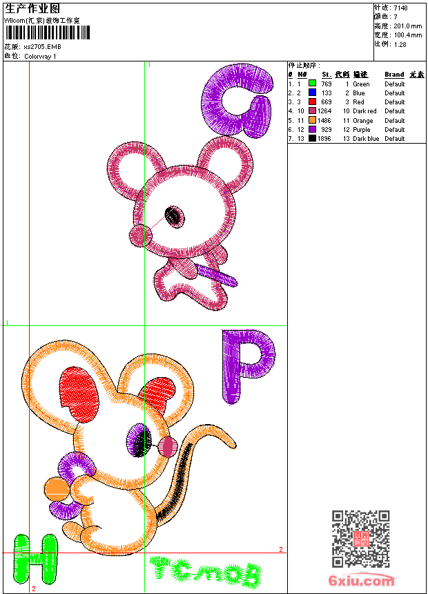 - 版带文件需绣花软件方可打开,可配色打印导出各种格式或直接上机绣。如无绣花软件可下载1:1模拟效果图。