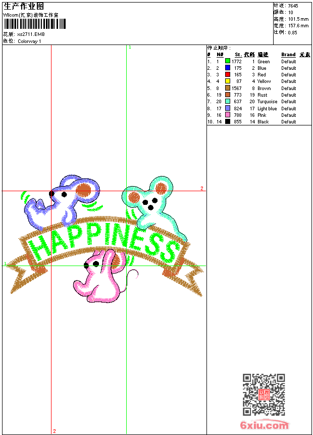 - 版带文件需绣花软件方可打开,可配色打印导出各种格式或直接上机绣。如无绣花软件可下载1:1模拟效果图。