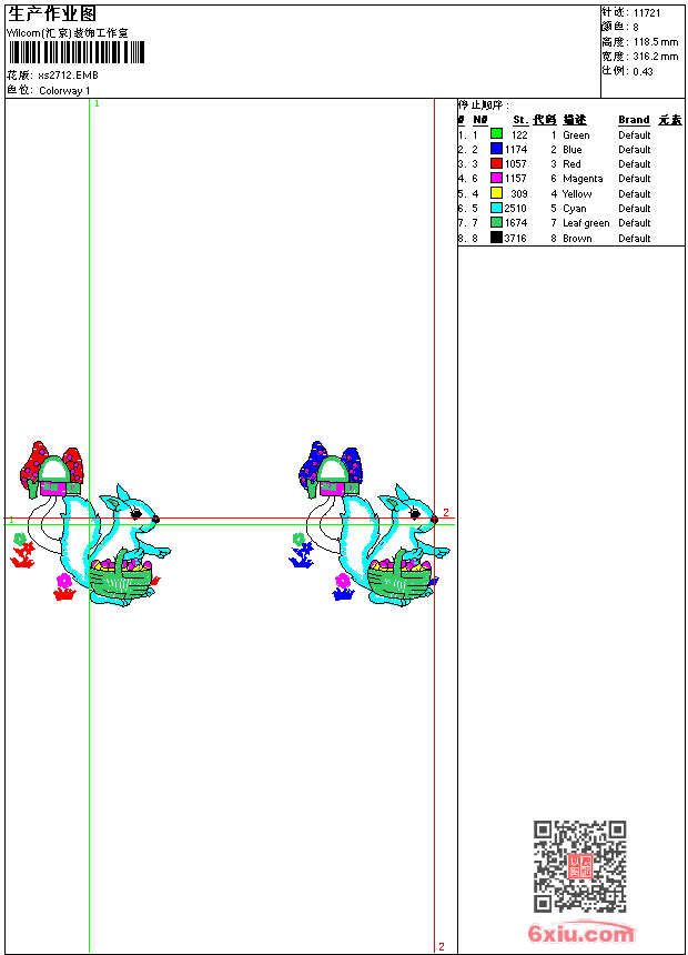 - 版带文件需绣花软件方可打开,可配色打印导出各种格式或直接上机绣。如无绣花软件可下载1:1模拟效果图。
