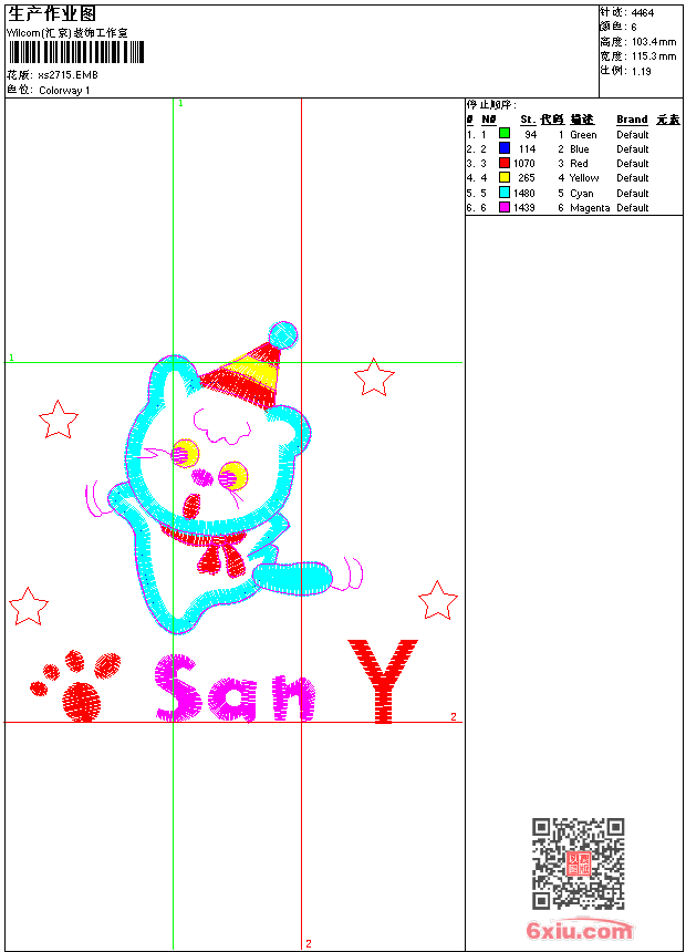 - emb花版参数: 大小:43.50 KB / 尺寸:115*103[毫米] / 针数:4464针 / 线色:6 / 格式:emb / 版本:9