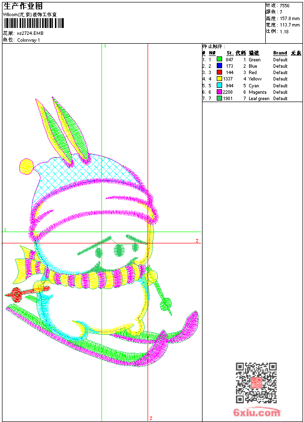 - emb花版参数: 大小:46.00 KB / 尺寸:114*158[毫米] / 针数:7556针 / 线色:7 / 格式:emb / 版本:9