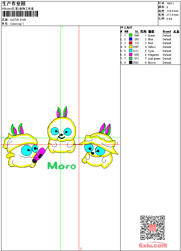 - 版带文件需绣花软件方可打开,可配色打印导出各种格式或直接上机绣。如无绣花软件可下载1:1模拟效果图。