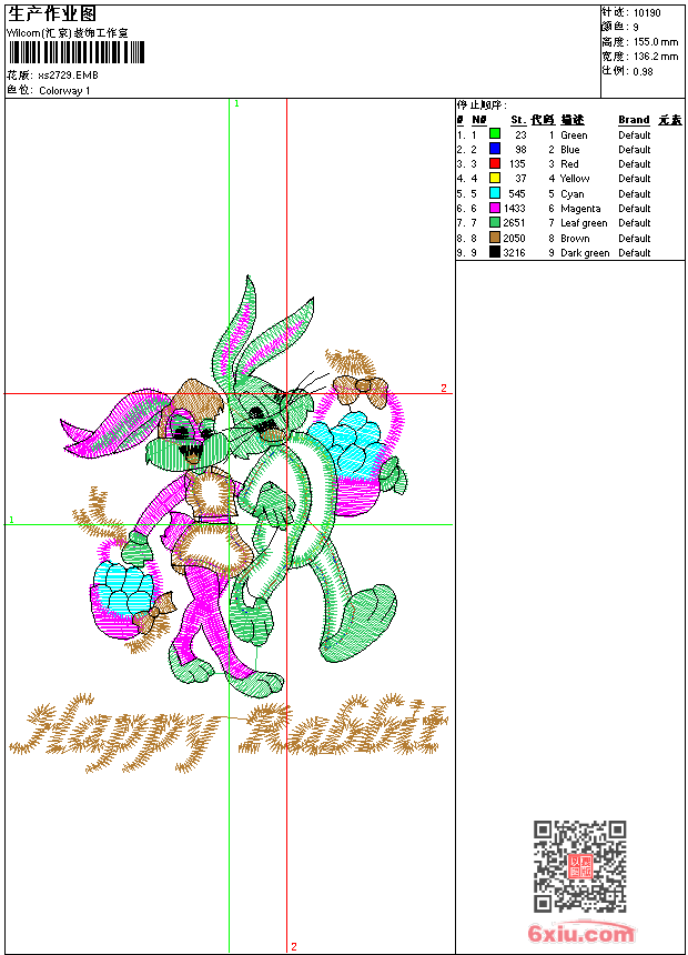 - 版带文件需绣花软件方可打开,可配色打印导出各种格式或直接上机绣。如无绣花软件可下载1:1模拟效果图。
