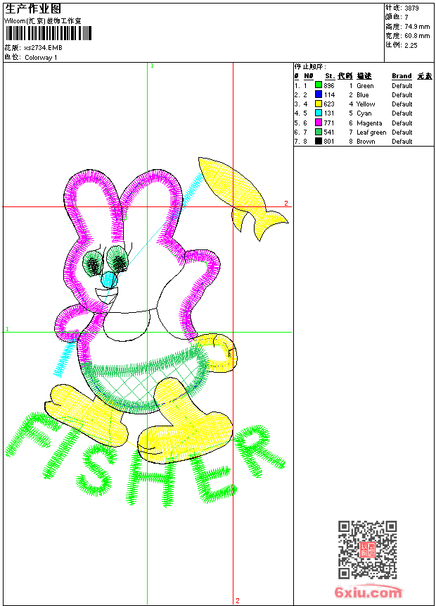 - emb花版参数: 大小:26.00 KB / 尺寸:61*75[毫米] / 针数:3879针 / 线色:7 / 格式:emb / 版本:9