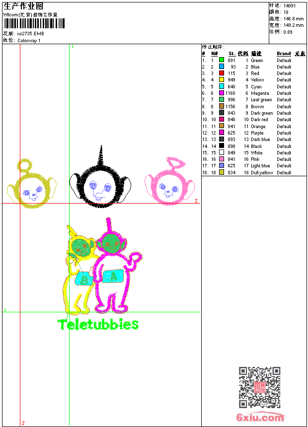 - 版带文件需绣花软件方可打开,可配色打印导出各种格式或直接上机绣。如无绣花软件可下载1:1模拟效果图。