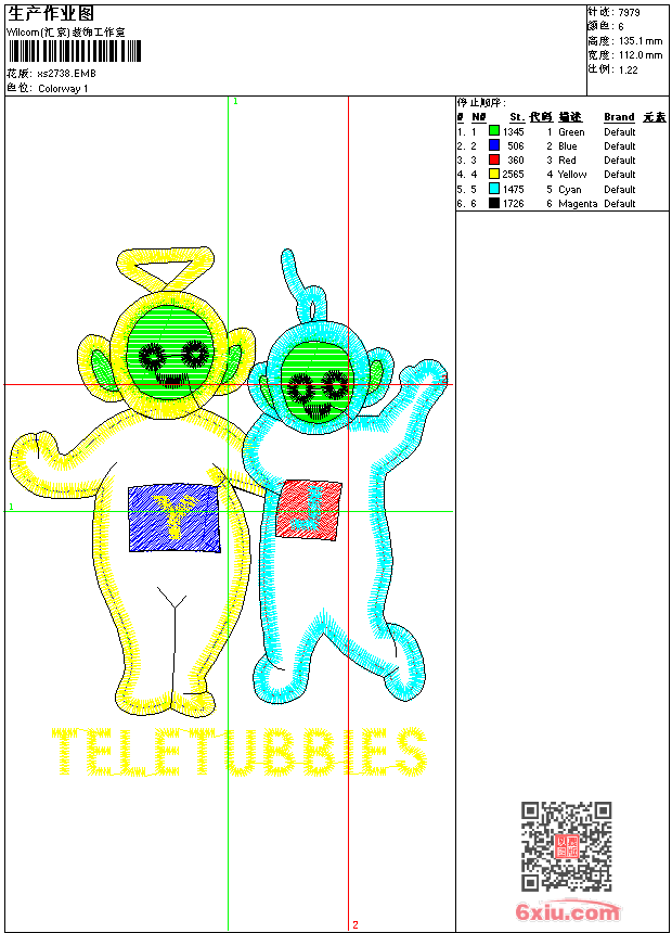 - emb花版参数: 大小:43.50 KB / 尺寸:112*135[毫米] / 针数:7979针 / 线色:6 / 格式:emb / 版本:9