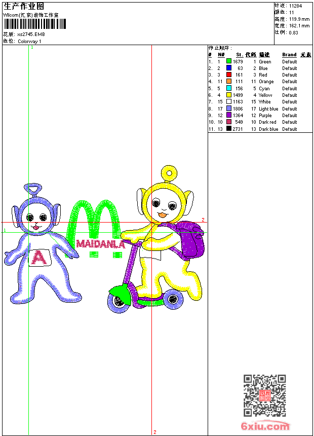 - 版带文件需绣花软件方可打开,可配色打印导出各种格式或直接上机绣。如无绣花软件可下载1:1模拟效果图。
