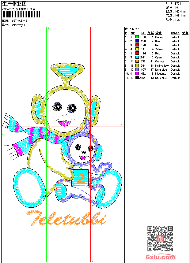 - 版带文件需绣花软件方可打开,可配色打印导出各种格式或直接上机绣。如无绣花软件可下载1:1模拟效果图。