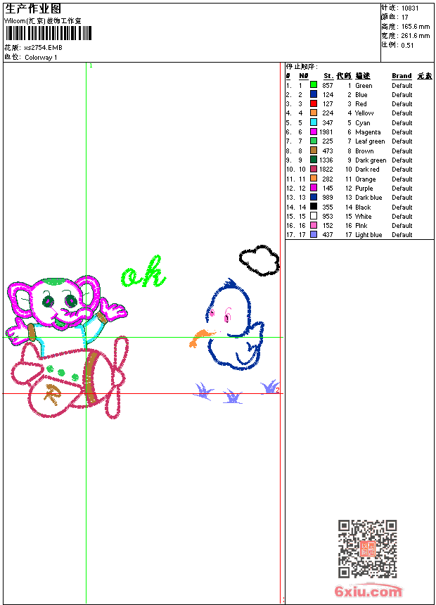 - 版带文件需绣花软件方可打开,可配色打印导出各种格式或直接上机绣。如无绣花软件可下载1:1模拟效果图。