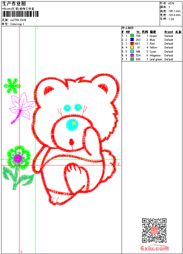 - emb花版参数: 大小:41.50 KB / 尺寸:129*145[毫米] / 针数:6576针 / 线色:7 / 格式:emb / 版本:9