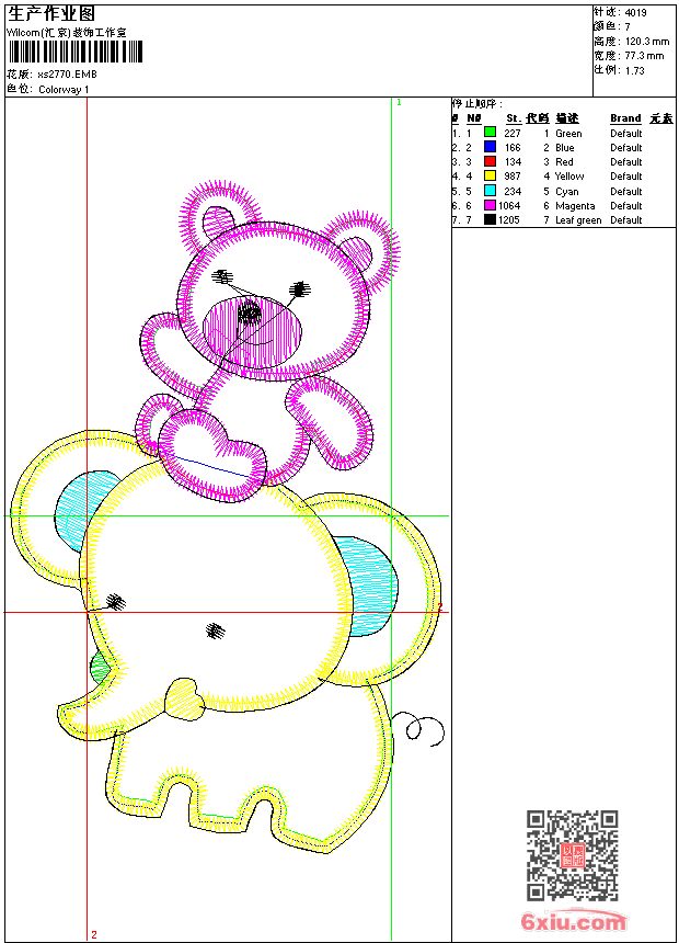 - 版带文件需绣花软件方可打开,可配色打印导出各种格式或直接上机绣。如无绣花软件可下载1:1模拟效果图。