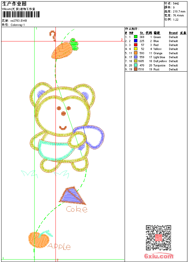 - 版带文件需绣花软件方可打开,可配色打印导出各种格式或直接上机绣。如无绣花软件可下载1:1模拟效果图。