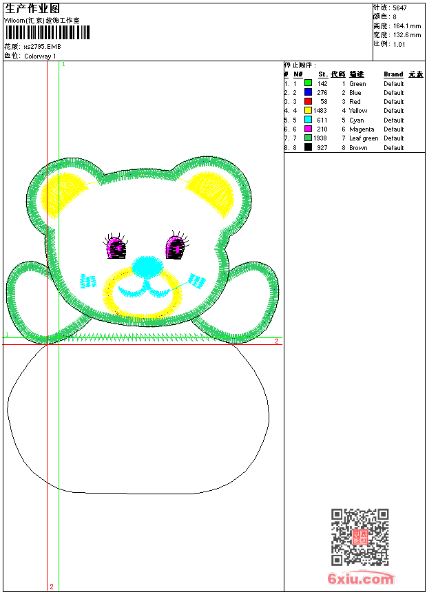 - emb花版参数: 大小:36.00 KB / 尺寸:133*164[毫米] / 针数:5647针 / 线色:8 / 格式:emb / 版本:9