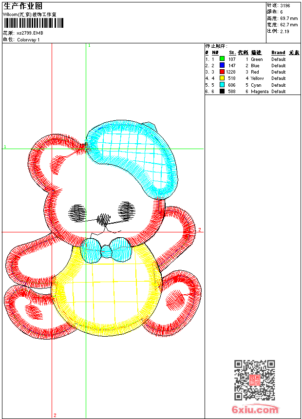 - 版带文件需绣花软件方可打开,可配色打印导出各种格式或直接上机绣。如无绣花软件可下载1:1模拟效果图。