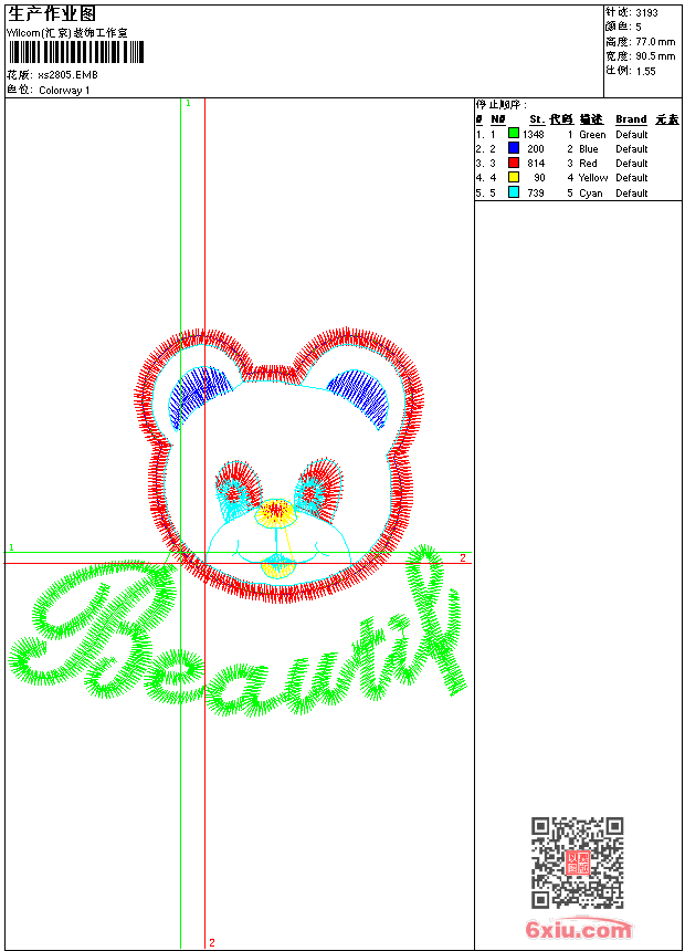 - 版带文件需绣花软件方可打开,可配色打印导出各种格式或直接上机绣。如无绣花软件可下载1:1模拟效果图。
