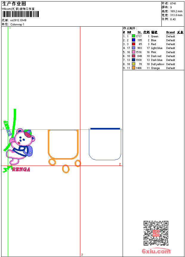 • 版带文件需绣花软件方可打开,可配色打印导出各种格式或直接上机绣。如无绣花软件可下载1:1模拟效果图。