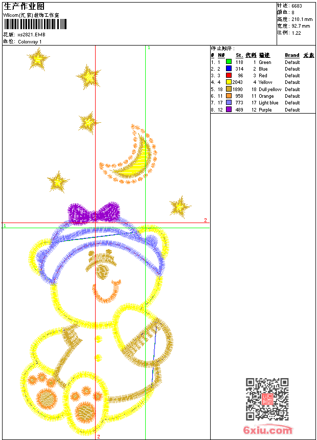 - 版带文件需绣花软件方可打开,可配色打印导出各种格式或直接上机绣。如无绣花软件可下载1:1模拟效果图。