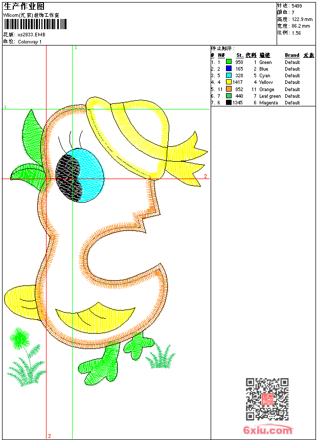 - 版带文件需绣花软件方可打开,可配色打印导出各种格式或直接上机绣。如无绣花软件可下载1:1模拟效果图。