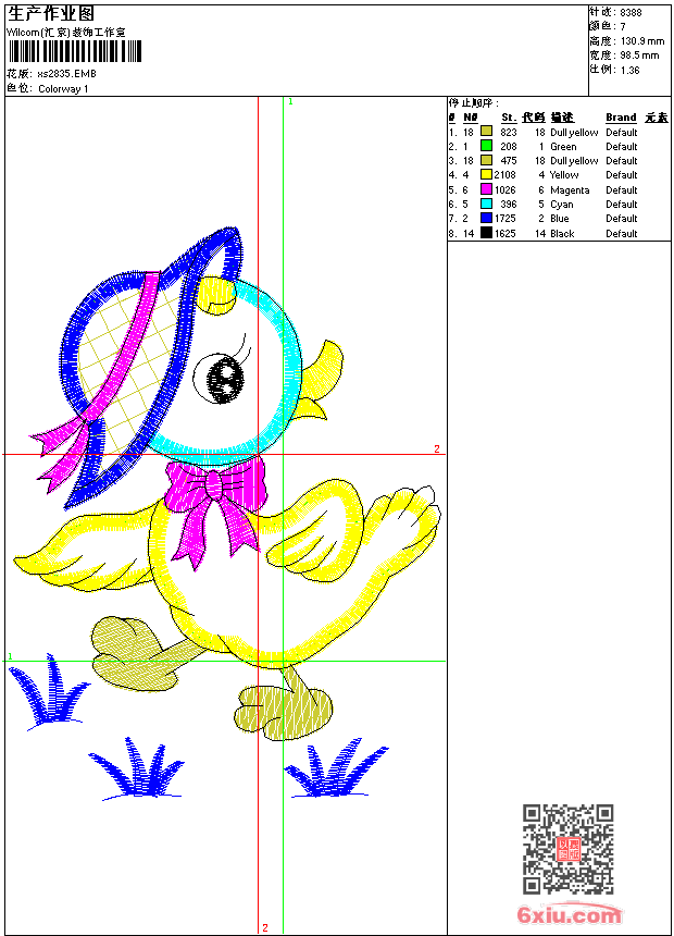 • 版带文件需绣花软件方可打开,可配色打印导出各种格式或直接上机绣。如无绣花软件可下载1:1模拟效果图。