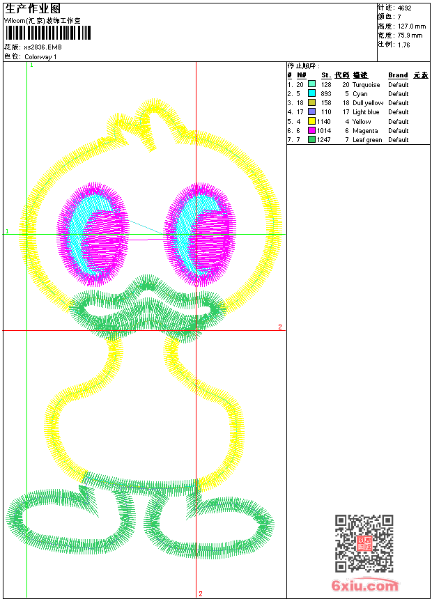 - 版带文件需绣花软件方可打开,可配色打印导出各种格式或直接上机绣。如无绣花软件可下载1:1模拟效果图。