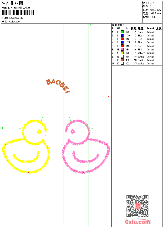 - 版带文件需绣花软件方可打开,可配色打印导出各种格式或直接上机绣。如无绣花软件可下载1:1模拟效果图。