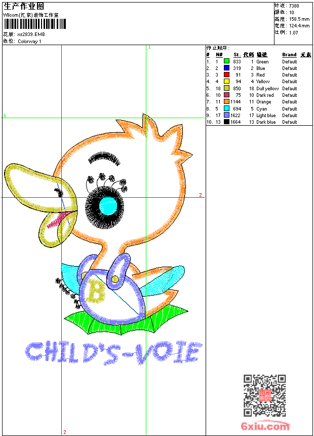 - 版带文件需绣花软件方可打开,可配色打印导出各种格式或直接上机绣。如无绣花软件可下载1:1模拟效果图。