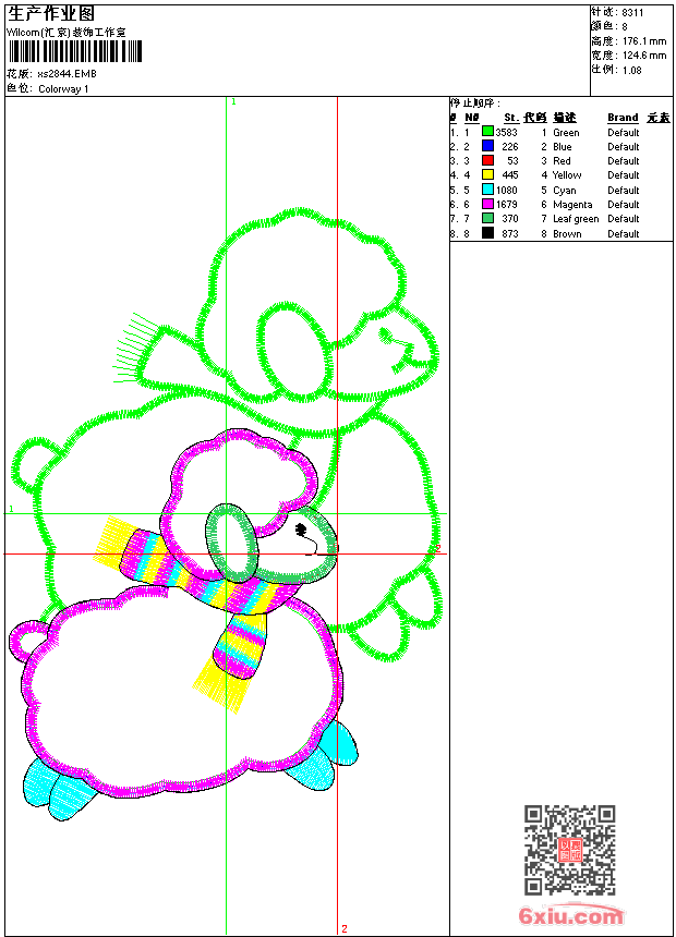 • 版带文件需绣花软件方可打开,可配色打印导出各种格式或直接上机绣。如无绣花软件可下载1:1模拟效果图。