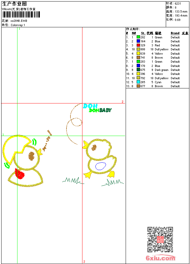 - 版带文件需绣花软件方可打开,可配色打印导出各种格式或直接上机绣。如无绣花软件可下载1:1模拟效果图。