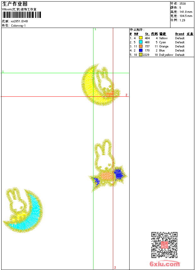 - 版带文件需绣花软件方可打开,可配色打印导出各种格式或直接上机绣。如无绣花软件可下载1:1模拟效果图。