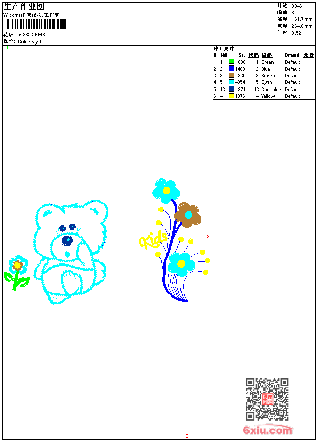 - emb花版参数: 大小:75.50 KB / 尺寸:264*162[毫米] / 针数:9046针 / 线色:6 / 格式:emb / 版本:9