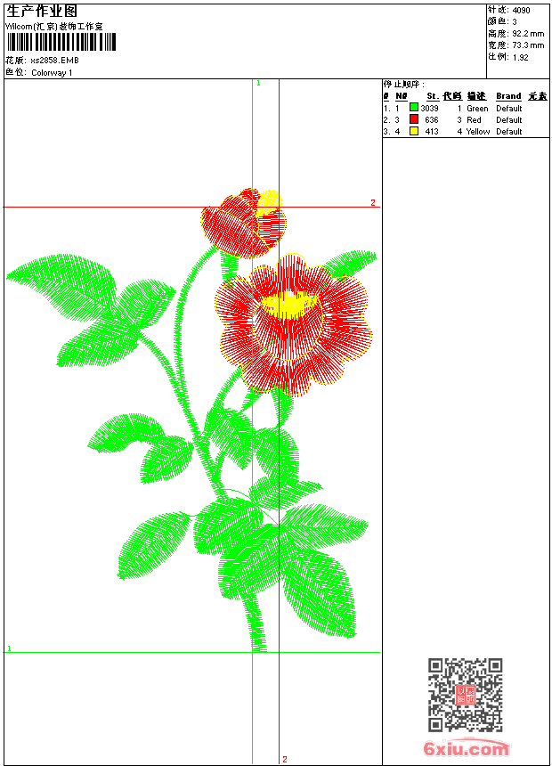 - emb花版参数: 大小:43.00 KB / 尺寸:73*92[毫米] / 针数:4090针 / 线色:3 / 格式:emb / 版本:9