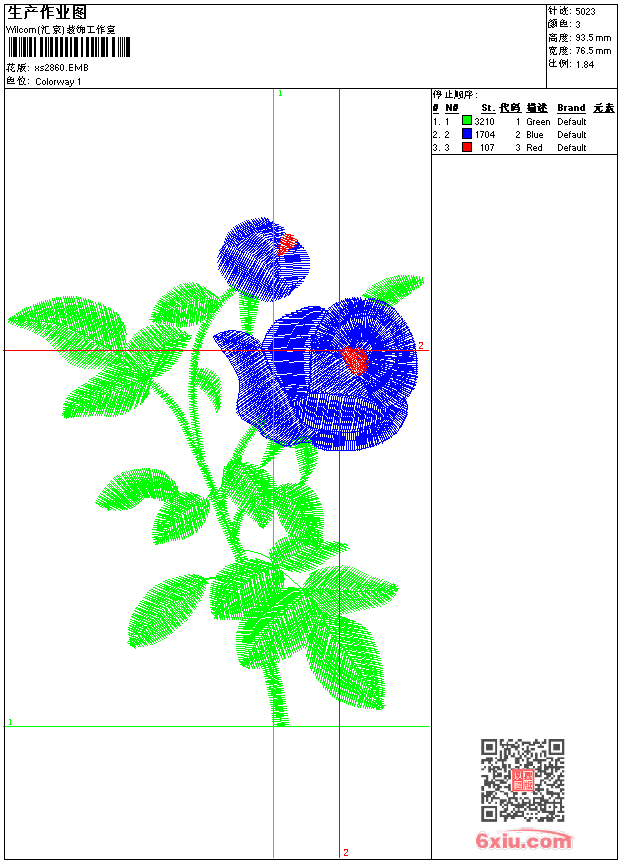 - emb花版参数: 大小:36.00 KB / 尺寸:77*94[毫米] / 针数:5023针 / 线色:3 / 格式:emb / 版本:9