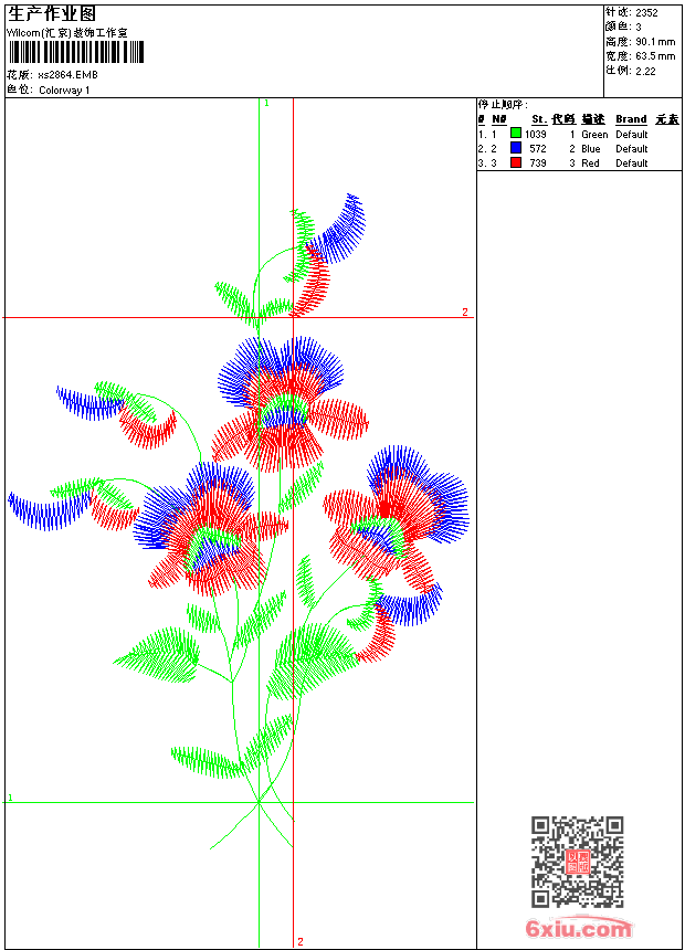 - emb花版参数: 大小:31.00 KB / 尺寸:63*90[毫米] / 针数:2352针 / 线色:3 / 格式:emb / 版本:9
