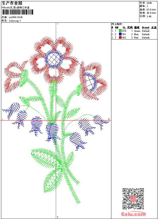 - emb花版参数: 大小:33.50 KB / 尺寸:41*64[毫米] / 针数:2040针 / 线色:3 / 格式:emb / 版本:9