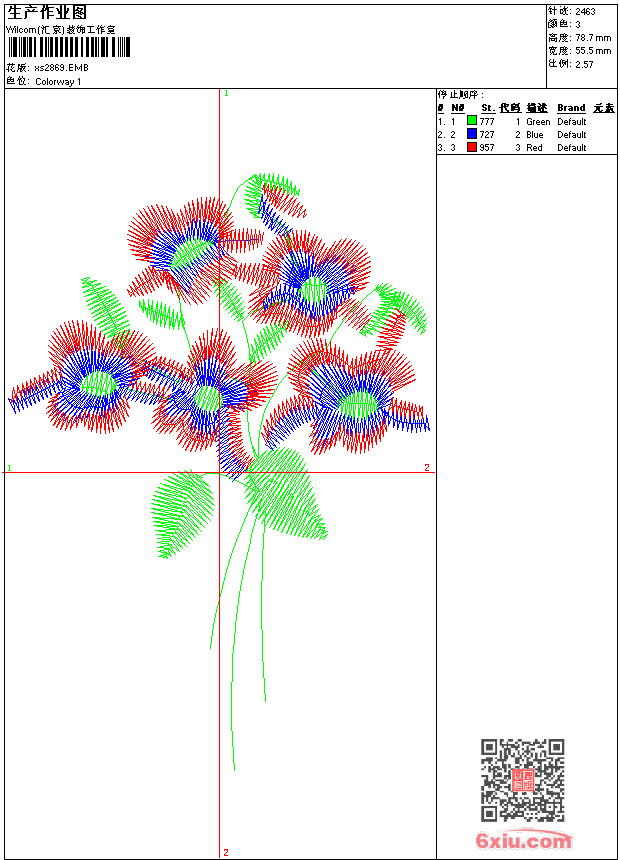 - emb花版参数: 大小:32.50 KB / 尺寸:56*79[毫米] / 针数:2463针 / 线色:3 / 格式:emb / 版本:9