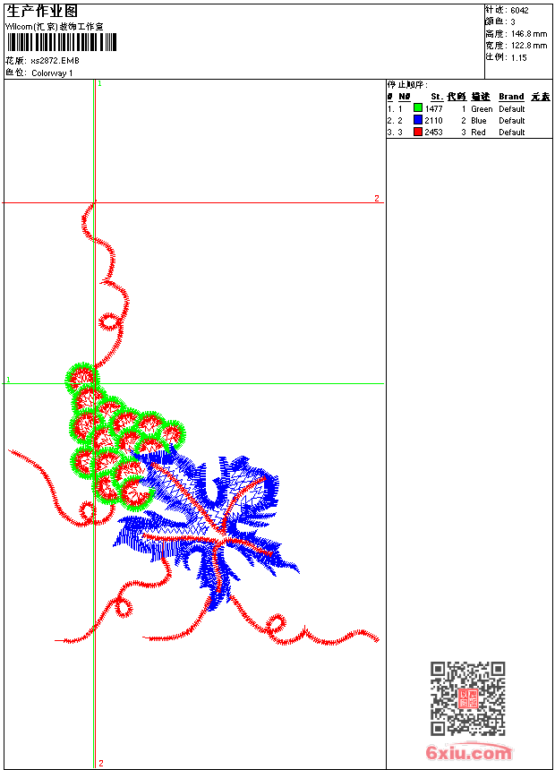 - emb花版参数: 大小:76.50 KB / 尺寸:123*147[毫米] / 针数:6042针 / 线色:3 / 格式:emb / 版本:9