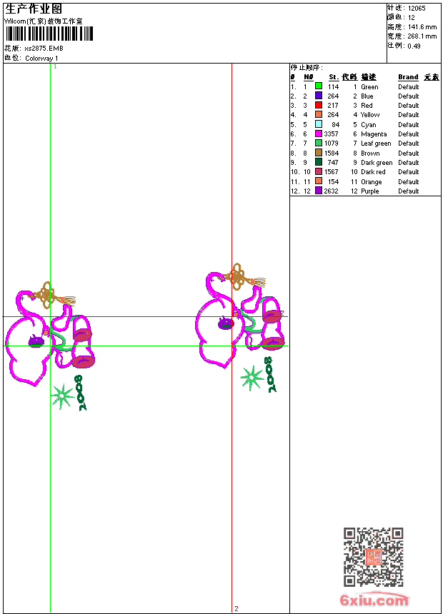 - 版带文件需绣花软件方可打开,可配色打印导出各种格式或直接上机绣。如无绣花软件可下载1:1模拟效果图。